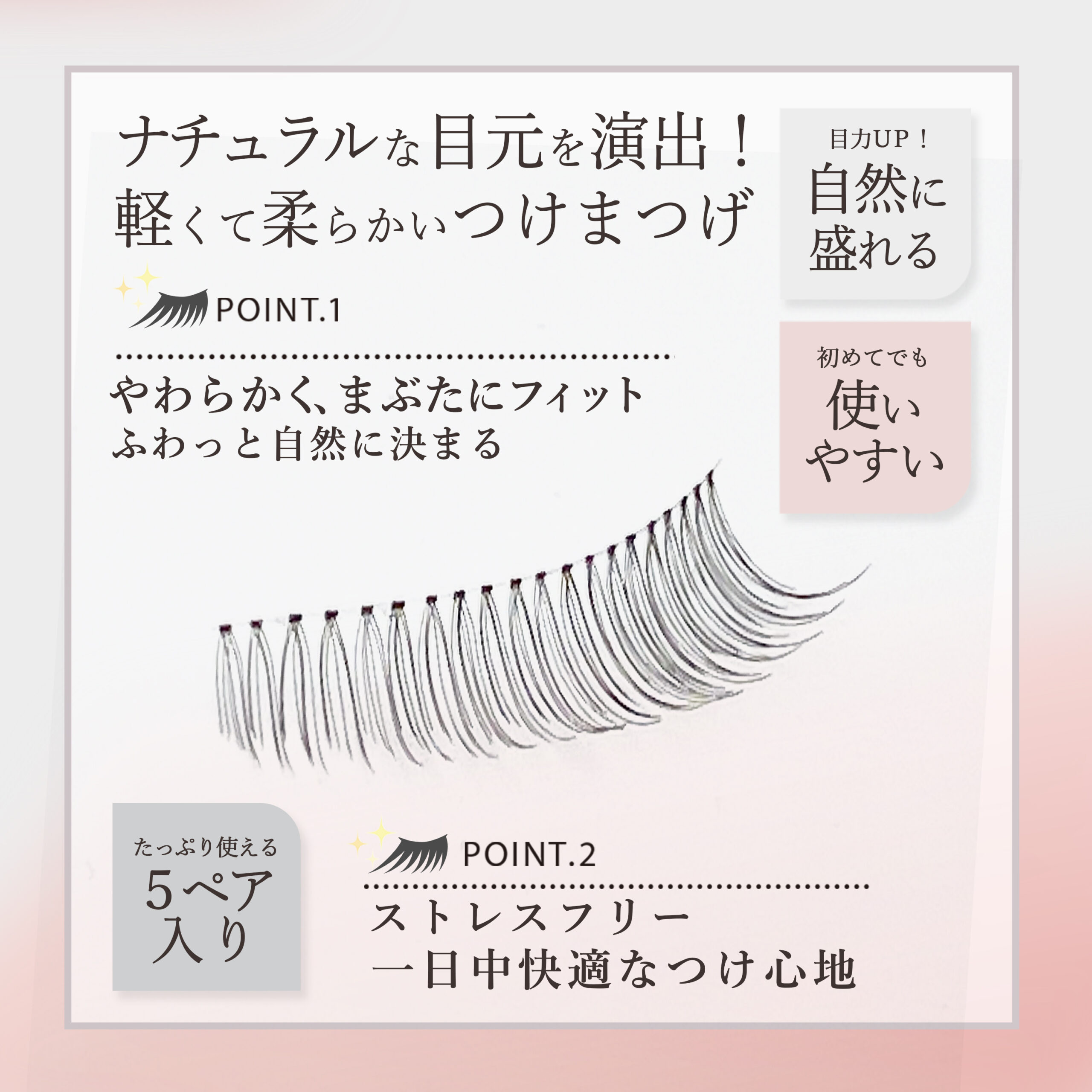 - 👀✨まつエク風の自然な仕上がりで、垢抜けたトレンド顔に近づけます。